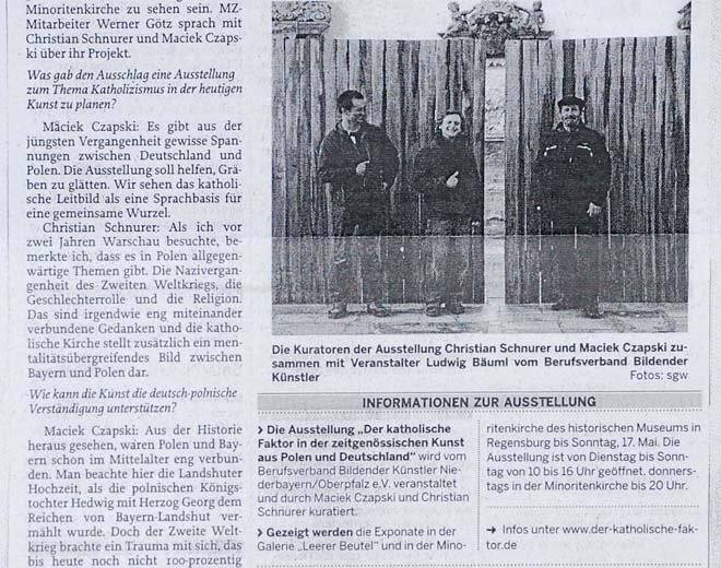FAKTOR K - Mit "Der katholische Faktor" ist ein herausragendes Kunstprojekt in Regensburg (wird es die Ausstellung des Jahres?) betitel: 70 Künstler aus Polen und Deutschland zeigen ihre Werke und damit ihre Haltung zur katholischen Kirchentradition in den beiden Nachbarländern ... KJ, Peter Lang 26.03.2009