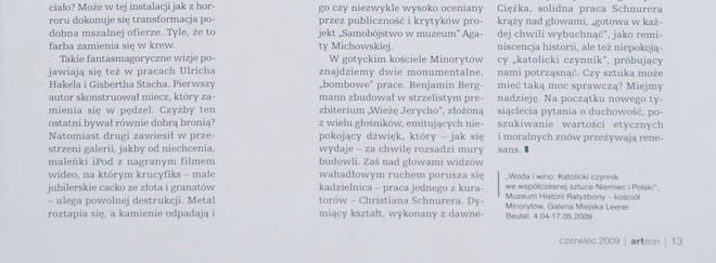 Das Wort "ekelerregend" macht die Runde. Trotzdem ist es faszinierend, wie die 70 Künstler und Künstlergruppen aus Polen und Deutschland in der Galerie "Leerer Beutel" sowie in der Minoritenkirche (Historische Museum Regensburg) das Verhältnis von Kirche und Kunst interpretieren ... hak, SZ Bayern Kultur, 8.05.2009